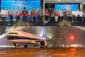 Seremoni penyambutan penerbangan perdana rute Guangzhou (CAN) – Surabaya (Sub) maskapai China Southern Airlines dengan No. Penerbangan CZ-8137 yang diawali dengan tradisi Water Salute oleh Tim ARFF Bandara Internasional Juanda dan simbolis pengalungan bunga kepada penumpang.