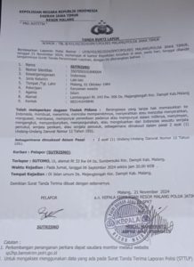 Sementara itu, BRIPDA Jonathan Febrian Efendy dari Unit VI Suber Polres Malang, saat dikonfirmasi melalui WhatsApp terkait perkembangan laporan tersebut, menjawab singkat, “Mohon maaf sebelumnya, saya hanya mengirimkan perkembangan perkara ini kepada Pelapor.”
