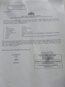 Hal tersebut sudah dilaporkan dan ada Surat Tanda Penerimaan Laporan (STPL) dengan Nomor: STPL/02/2025/SPKT Polsek Pasrepan Polres Pasuruan Polda Jatim.