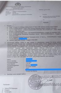 Kasus ini bermula dari laporan yang masuk ke Polres Malang pada 21 November 2024 dengan Nomor: LP/B/431/XI/2024/SPKT/POLRES MALANG/POLDA JAWA TIMUR. Namun, proses hukum berjalan lambat. Surat Perintah Penyidikan (SP.Dik) baru terbit pada 30 Desember 2024, diikuti dengan pengiriman Surat Pemberitahuan Dimulainya Penyidikan (SPDP) pada hari yang sama — lebih dari sebulan setelah laporan masuk.
