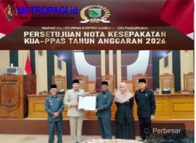 Dokumen yang disusun Badan Anggaran (Banggar) DPRD Kabupaten Pasuruan bersama Tim Anggaran Pemerintah Daerah (TAPD) telah disepakati menjadi Kebijakan Umum Anggaran (KUA) dan Prioritas Plafon Anggaran Sementara (PPAS) Tahun Anggaran 2026.