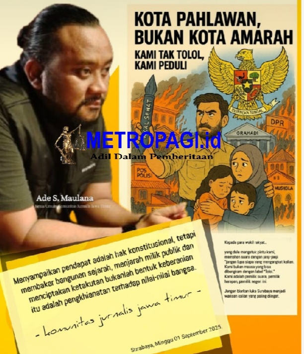 METROPAGI.ID, SURABAYA – Surabaya bukan sekadar titik di peta. Ia adalah denyut nadi Jawa Timur, tempat sejarah bangsa digores dengan darah dan keberanian. Kota ini adalah saksi bisu perjuangan, tempat para pahlawan menolak tunduk pada penjajahan. Tapi beberapa hari terakhir, Surabaya kembali bergetar, bukan oleh semangat perjuangan, melainkan oleh amarah yang kehilangan arah.