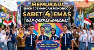 METROPAGI.ID, PONOROGO, Kembali mengukir prestasi gemilang yang patut dibanggakan. SMK Negeri 1 Jenangan sekali lagi membuktikan kualitasnya sebagai salah satu sekolah vokasi unggulan di Jawa Timur setelah sukses menorehkan hasil luar biasa pada ajang Lomba Kompetisi Siswa atau LKS tingkat Provinsi Jawa Timur yang berlangsung di Surabaya pada tanggal 6 hingga 9 April 2026 lalu.
